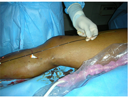The tip of the catheter is heated and the vein is ablated by gradually pulling the catheter out. The vein is blocked completely and the sheath is removed. There will be no scar since there is no cutting or suturing